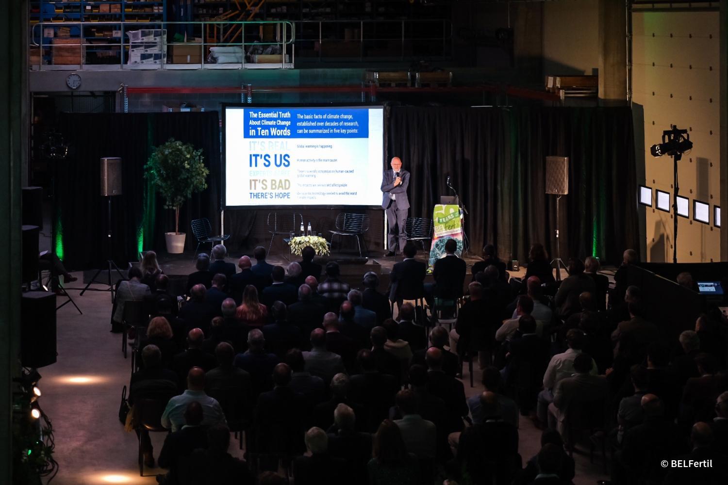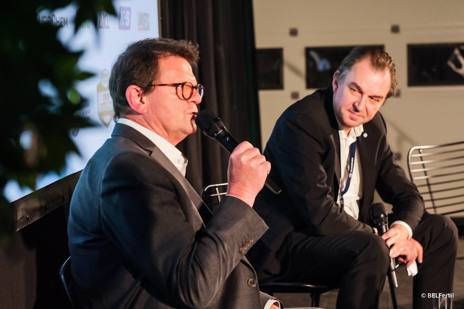 Les participants ont écouté la présentation fascinante de Jean-Pascal van Ypersele qui a exposé la situation climatique mondiale et ce que nous pouvons attendre pour la Belgique. Lors du débat, Tiffanie Stephani (Yara), Hendrik Vandamme (ABS) et Paul Demyttenaere (Reo Veiling) ont expliqué comment l'agriculture en général et le secteur des engrais minéraux en particulier cherchent ensemble des solutions pour s'armer contre la crise climatique. Le président de BELFertil, Jean-Paul Beens (Yara), et le vice-président Filip Dejongh (EuroChem Antwerpen) ont donné, lors de la double interview finale, des exemples concrets de la manière dont les engrais minéraux font partie intégrante de l'économie circulaire et des résultats importants obtenus depuis des années en matière de réduction des gaz à effet de serre dans la production d'engrais minéraux, grâce à l’innovation. En outre, ils ont exposé également les défis de demain, tant pour l’association que pour le secteur, au niveau de la production et des produits.